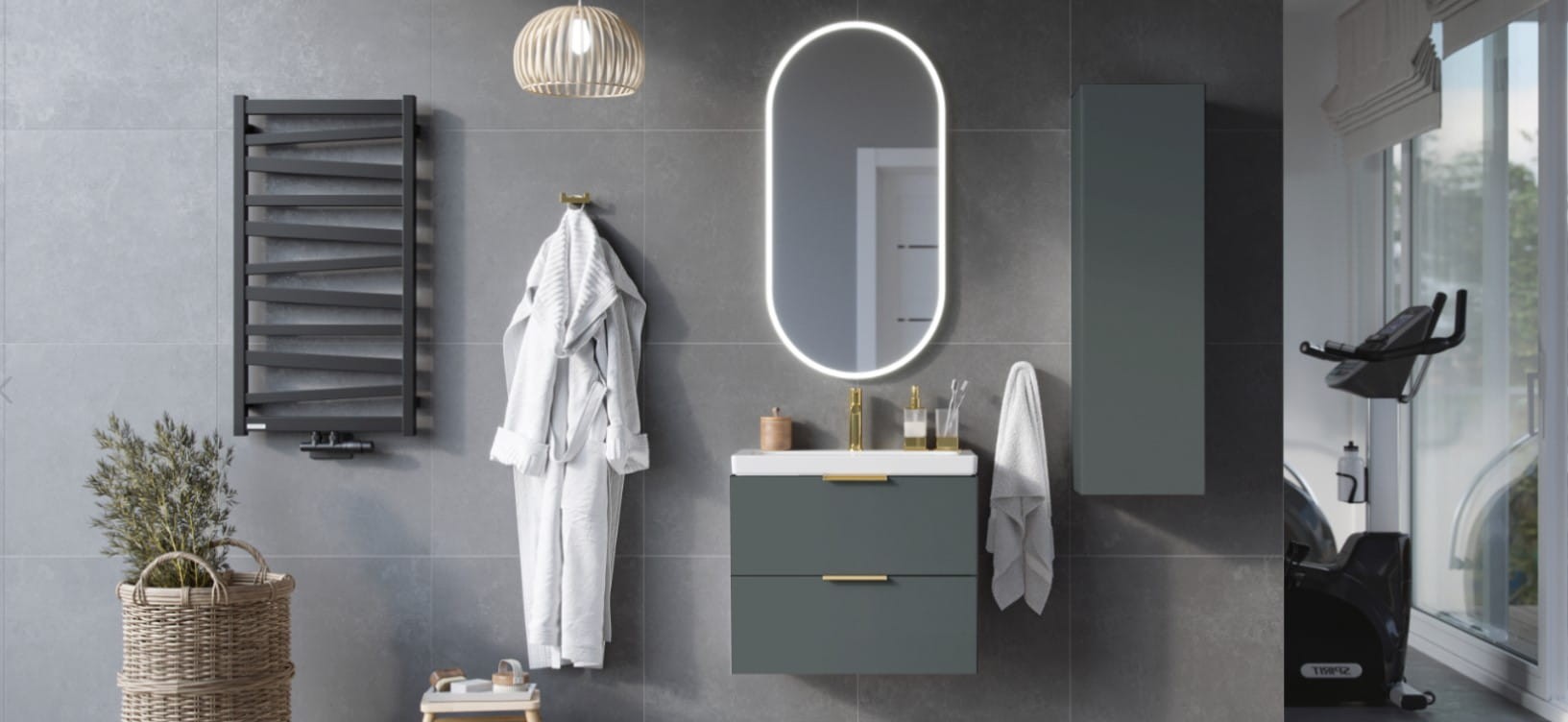 Szafki z umywalką dostępne są w 2 szerokościach 49 i 65cm, 3 kolorach: biały połysk, czarny soft, szałwiowy mat oraz 3 kolorach uchwytów: chrom, złoty połysk, czarny mat, które można dowolnie zamawiać i zestawiać z kolorami mebla.