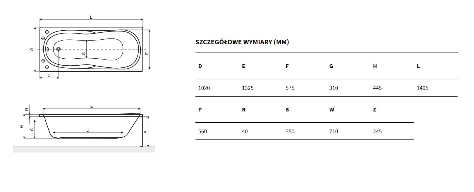 - wanna prostokątna, 1500x700