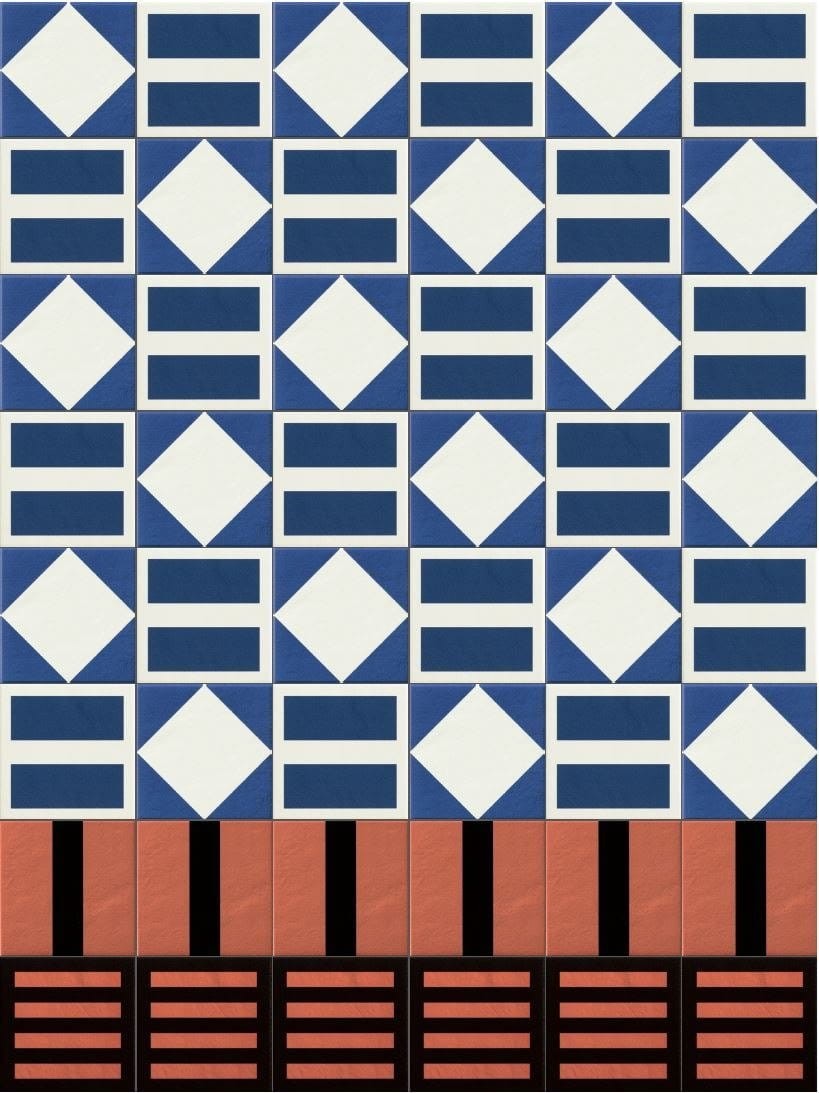 Mattonelle Margherita współpracowała z Mutiną kolor, wraz z artystką Nathalie Du Pasquier, stworzyli złożony projekt zawierający mieszankę różnych środków estetycznych i formalnych. Kolekcję charakteryzuje dwojaki koncept: z jednej strony prosty, minimalistyczny styl, ewidentny w elementach jednobarwnych, a z drugiej strony odważne, kreatywne podejście, charakteryzujące się duża różnorodność grafiki. W sumie składa się z 41 ręcznie zaprojektowanych wzorów, dostępnych w dwóch rozmiarach. Elementy wykonane są z gresu porcelanowego szkliwionego, przy użyciu tradycyjnej przemysłowej metody produkcji stosowanej w przeszłości. Aby uzyskać najlepszy możliwy wynik pod względem wykończenia i koloru, aby nadać jasne, żywe wykończenie do satynowej powierzchni. Połączenie czystego białego woskowanego szkliwa, gwarantuje naturalnie wyglądającą powierzchnię, na którym kolor jest wchłaniany, maksymalizując jego efekt.