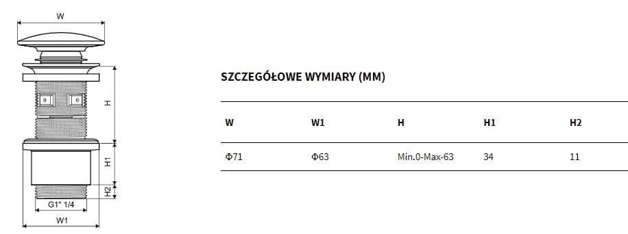 Dodatkowo istnieje możliwość dostosowania korka do umywalek z przelewem jak i bez przelewu.
